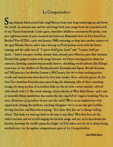 The Krayolas album ‘La Conquistadora’ nicely packaged with 8-page lyric booklet featuring liner notes by John Phillip Santos and artwork by David Zamora Casas.